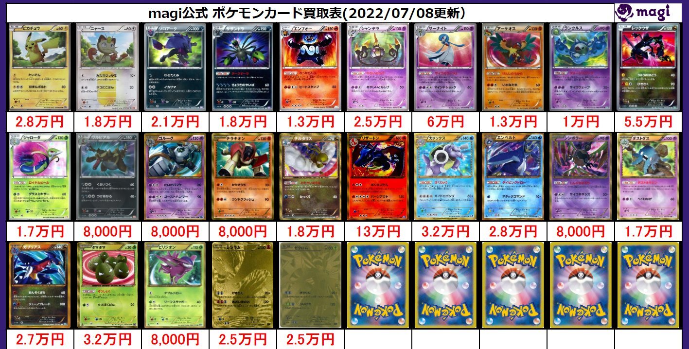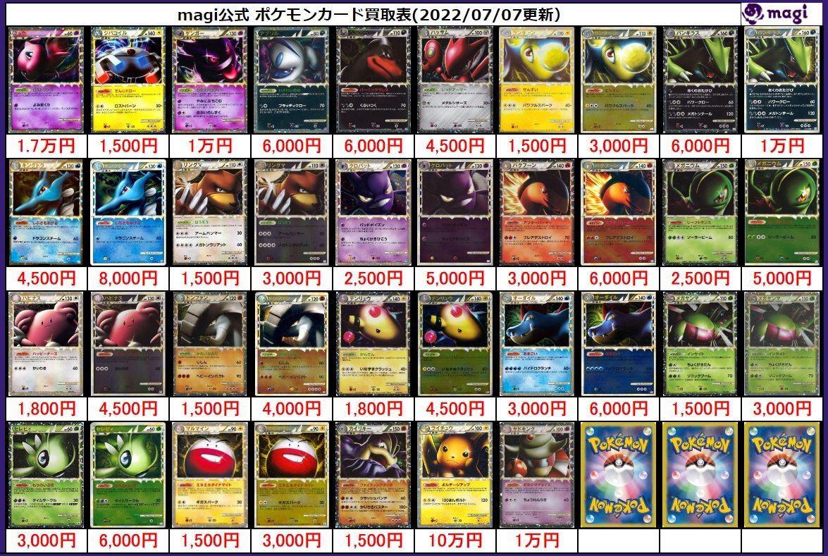 ◆詳細な営業情報はこちら ポケカ専門店『magipoke』Twitter URL:https://twitter.com/magi_Nakano2 ※買取価格については公開した日に限り有効であり、それ以降の有効性を保証するものではありません。