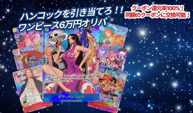 【オンラインオリパ新発売】クーポン還元率100%!!1等はハンコックのコミックパラレル!ワンピースカードゲームのオンラインオリパ販売中!