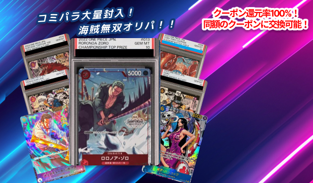 クーポン還元率100%!!1等はPSA10のロロノア・ゾロCSプロモ!ワンピースカードゲームの全50口オンラインオリパ新発売