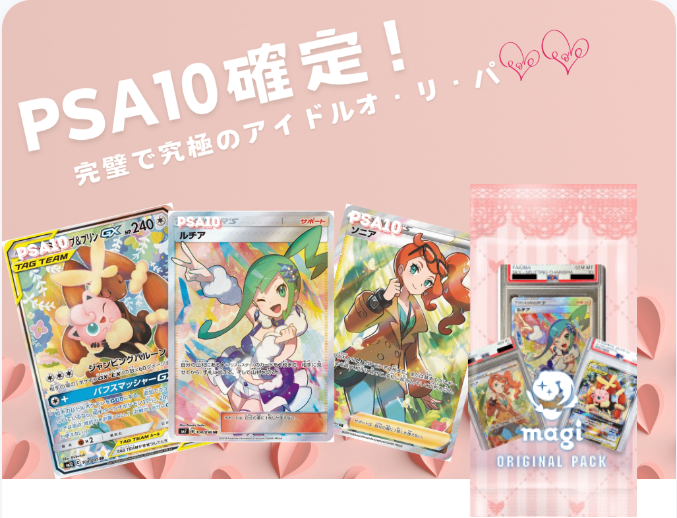 いつもmagiをご利用いただきありがとうございます! magi運営事務局でございます。 ポケカPSA10確定!完璧で究極なアイドルオリパ!!を新発売いたします。 オリパで収録されているカードの一例はこちらです! 【1等】 【PSA10】ルチア (SR) {104/096} [sm7] 【2等】 【PSA10】れんげきウーラオスVMAX SA 【PSA10】リーフィアVMAX SA (HR) {089/069} [s6a] などこの他にも魅力的なカードを揃えました! その他販売しているオリパはこちらから確認ください 当選したカードは¥30,000 OFFクーポンに変換することもできます。 クーポン還元率100%のお得なオリパなので、ぜひ挑戦してみてください!