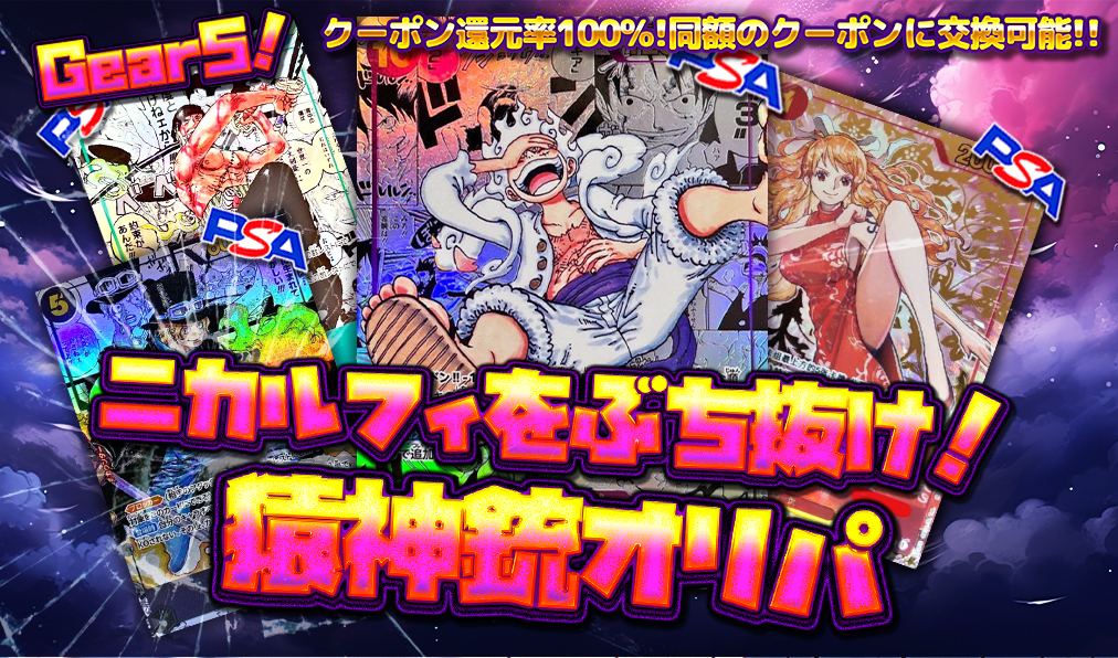 クーポン還元率100%!!1等はPSA10ニカルフィ!ワンピースカードゲームの全40口オンラインオリパ新発売